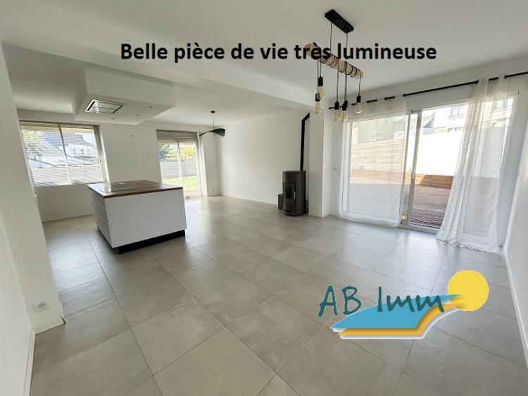 Ref : MG2527ETRES BELLE RENOVATION AVEC MATERIAUX DE QUALITE POUR CETTE MAISON DES ANNEES 50 , PROCHE LORIENT ET TOUTES COMMODITES COMPRENANT ENTREE CUISINE EQUIPEE OUVRANT SUR SEJOUR SALON LUMINEUX AVEC POELE...