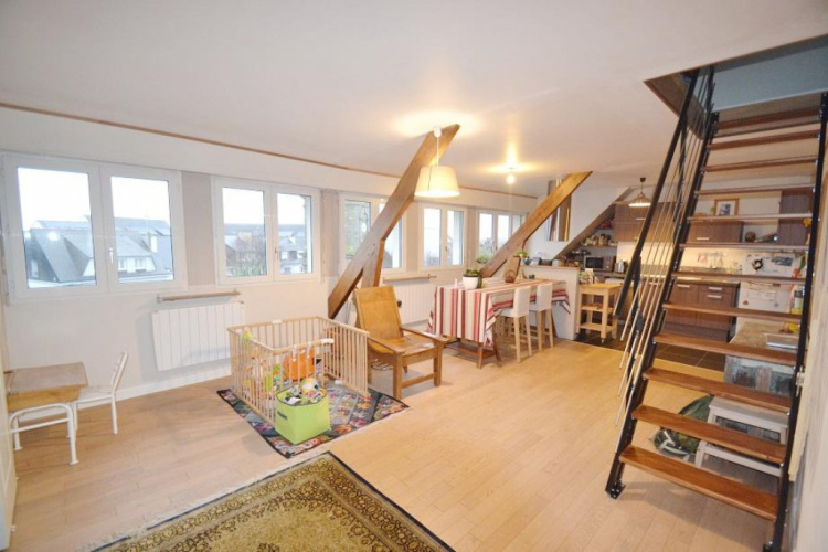 Ref : 21470ATRES AGREABLE DUPLEX DE 70 M² LOI CARREZ, 110 M² AU SOL, PROPOSANT DE BEAUX VOLUMES EN PLEIN CENTRE VILLE, GRANDE PIECE DE VIE LUMINEUSE AVEC CUISINE EQUIPEE OUVERTE, 2 CHAMBRES + COIN NUIT,...