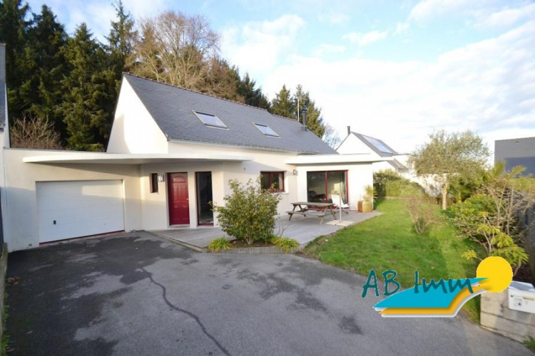 Ref : 2071aEN CAMPAGNE DE GUIDEL ET EN EXCLUSIVITE, CONTEMPORAINE DE 2012 AVEC PISINE CHAUFEE, SOUS GARANTIE DE 136 M², VASTE SEJOUR-SALON, CUISINE EQUIPEE, SUITE PARENTALE EN RDC AVEC DRESSING ET SDE, 3...