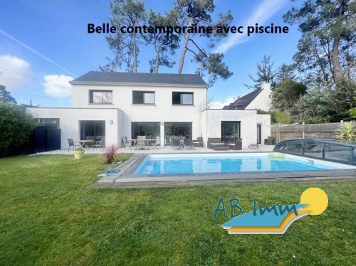 Prestations et finitions haut de gamme, ce superbe plain pied bati sur un parc d'environ 2000 m² paysagé ravira les plus exigeants. De très beaux espaces de vie lumineux sont complétés par un vaste coin nuit incluant une vraie suite parentale avec dressing et salle d'eau privative. Magnifique piscine intérieure/extérieure et belles performances énergétiques en font un produit d'exception! Honoraires inclus 3,2 % TTC. www.ab-immo.fr