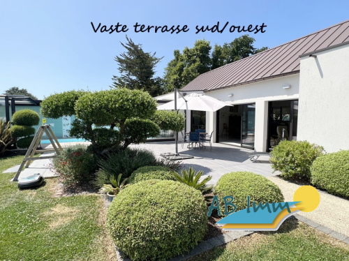 Rare, maison récente de 2010 au coeur de Lomener, bonne construction, sur 405 m² de terrain elle propose une vie de plain pied avec beau séjour-salon, cuisine équipée, suite parentale avec sde, 3 chambres + bureau et sdb à l'étage. Garage et buanderie. A VOIR ABSOLUMENT. Honoraires inclus 3,5 % TTC. www.ab-immo.fr